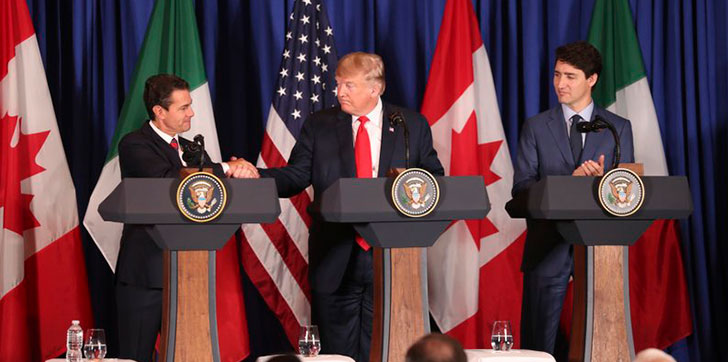 Durante una ceremonia antes del inicio de la cumbre del G20 en Buenos Aires, el mandatario estadounidense Donald Trump, el presidente saliente de México Enrique Peña Nieto y el primer ministro canadiense Justin Trudeau firmaron el Tratado entre México, Estados Unidos y Canadá (T-MEC), que reemplaza el Tratado de Libre Comercio de América del Norte (TLCAN), que estuvo vigente desde el 1 de enero de 1994,