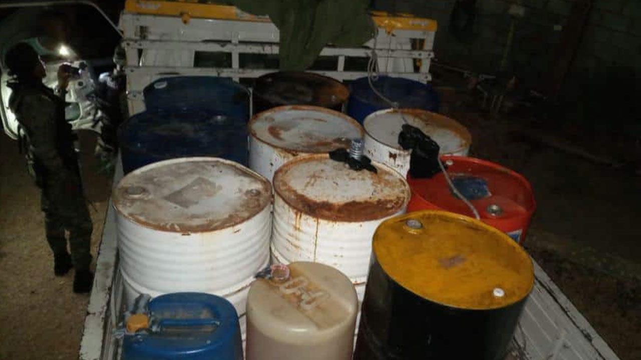 El combustible, según un comunicado de prensa, estaban distribuidos en 10 tanques de 55 galones y 2 garrafones de 20 galones cada uno.