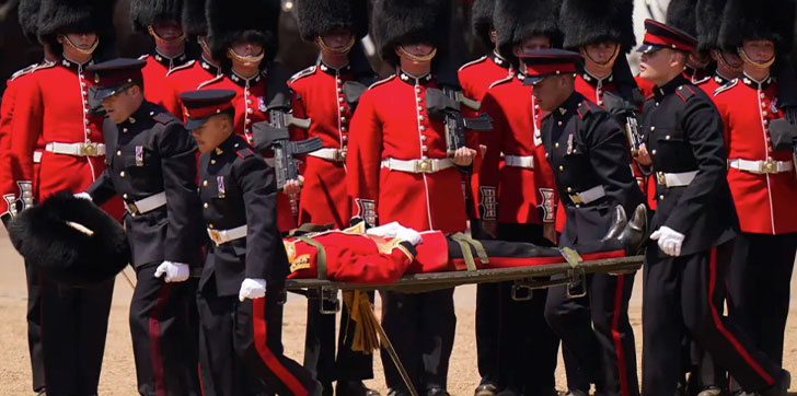 El calor abruma a soldados británicos durante un desfile militar en Londres