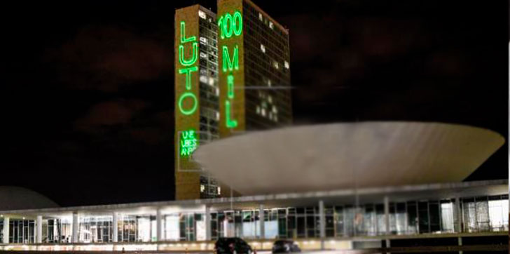Organizada por entidades estudiantiles y con la autorización previa de la Cámara Alta, la proyección en las torres de la sede de la Cámara de Diputados y del Senado puso en evidencia el luto por la «triste marca» alcanzada de 100.000 muertos por COVID-19 en Brasil, según explicó a Efe el director institucional de la Unión Nacional de los Estudiantes (UNE), Felipe Eish.