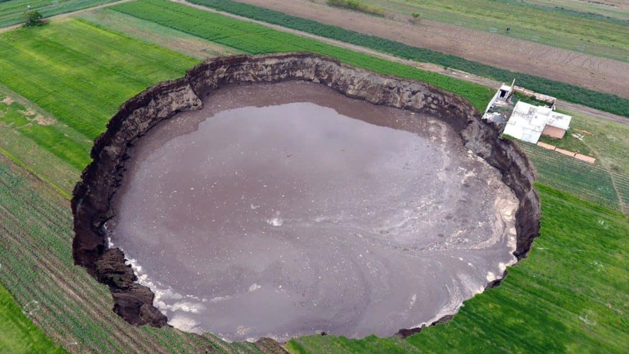 El socavón se originó con solo cinco metros de diámetro, en solo 24 horas pasó a los 30 metros y ha seguido creciendo hasta superar los 120 metros.