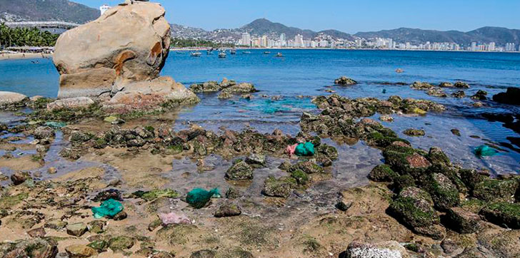 Las rocas del mar, las paredes de los restaurantes, quedaron expuestas a la visita en playas como Caleta, Caletilla y en zonas de el Revolcadero, aunque los turistas no suspendieron sus actividades y algunos fueron vistos nadando en el agua.