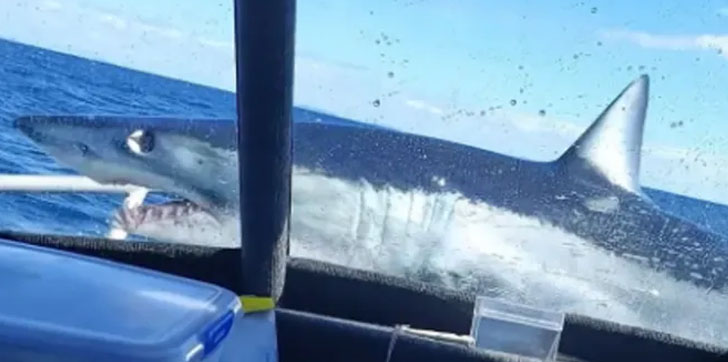 El hecho ocurrió el 5 de noviembre en un bote de Churchys Charter NZ que había salido al mar supervisado por Ryan Churches junto a cinco pasajeros en la costa de Whitianga, Nueva Zelanda. Después de que el tiburón quedara enganchado en un sedal, el escualo salió volando del agua y se estrelló contra la cubierta.