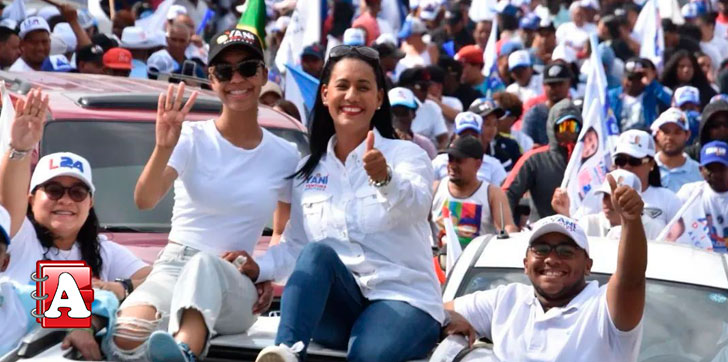 Acompañada de su equipo político, Ventura recorrió las calles de San Francisco durante el periplo proselitista que encabezó el primer mandatario y aspirante a la reelección.