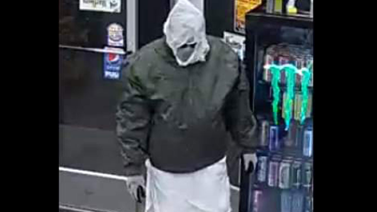 “El Sasquatch del dinero”: buscan a asaltante encapuchado con bolsas de basura