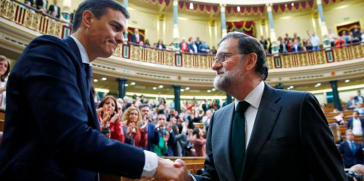 MADRID.- El socialista Pedro Sánchez fue elegido hoy nuevo presidente del Gobierno español, tras obtener la mayoría absoluta del Congreso de los Diputados en una moción de censura contra el conservador Mariano Rajoy.