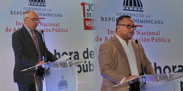 SAN FRANCISCO DE MACORÍS.- El embajador de la Delegación de la Unión Europea en el país, Gianluca Grippa y el viceministro del Ministerio de Administración Pública MAP, realizaron las conferencias magistrales “Iniciativas de Reforma y Modernización del Estado en la República Dominicana con el apoyo de la Cooperación de la Unión Europea”; y “Plan de la Reforma de la Administración Pública”, en la primera Jornada de capacitación para servidores públicos, organizado por el Instituto Nacional de Administración Pública (INAP), que durante una semana se estará desarrollando en todas las provincias y municipios de la Región Norte del País.