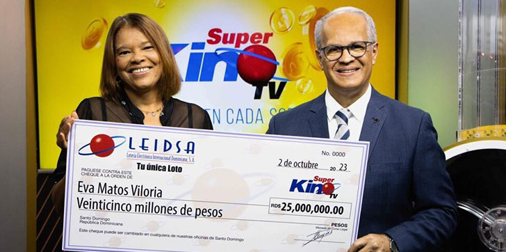 AGENDA56, SANTO DOMINGO.- La Lotería Electrónica Internacional Dominicana. S.A (LEIDSA) informó que entregó a Eva Matos Viloria el premio de 25 millones de pesos.