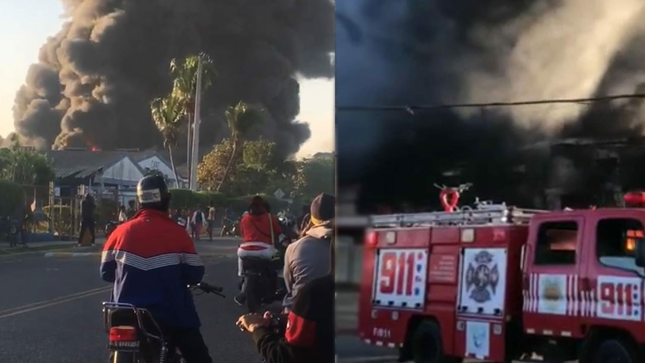 Unidades de bomberos de San Pedro de Macoris, La Romana, Juan Dolió y otras ciudades trabajan afanosamente para sofocar el siniestro que amenaza con extenderse a empresas contiguas.