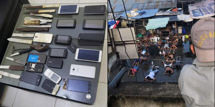 Tras calmar la situación, las autoridades realizaron una requisa al área de celdas conocida como Las Malvinas, donde hallaron tres porciones de un vegetal que se presume marihuana, un revólver, 13 cuchillos, 15 celulares, dos módems y 13 accesorios de amplificación de sonido, entre bocinas y otros dispositivos, objetos introducidos de manera clandestina.