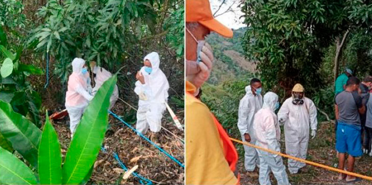 Miembros de la Defensa Civil de Loma de Cabrera y los Bomberos de Restauración recuperaron el cadáver en dicho barranco, el mismo se encontraba atado de las manos y el cuello, con signos de posibles quemaduras y heridas.