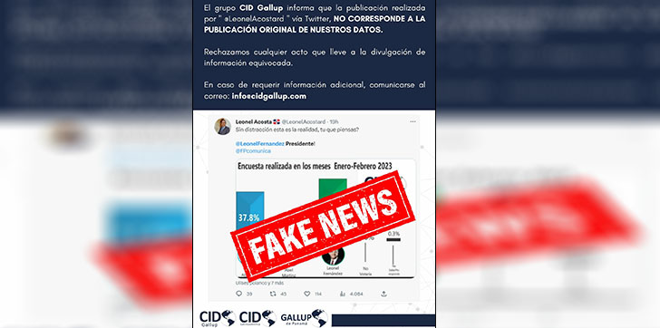 “El grupo CID Gallup informa que la publicación realizada por” eleonelAcostard ” via Twitter, NO CORRESPONDE A LA