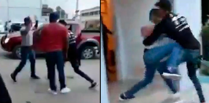En un vídeo que circula en las redes sociales se muestra cuando frente al cuartel policial uno de los agentes de forma violenta carga en hombros a otro joven que defendía al detenido alegando que le habían colocado la droga para acusarlo.