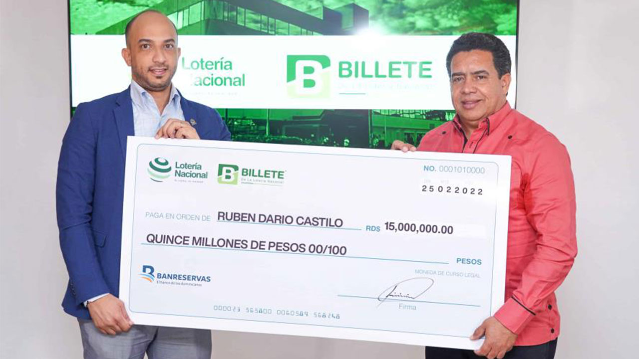 Entregan RD$15 millones a ganador de sorteo de la Lotería Nacional