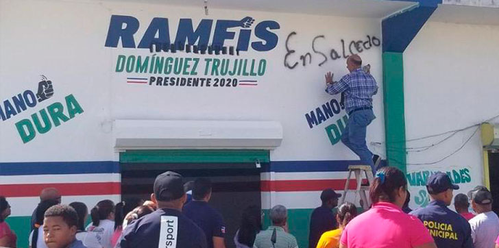 AGENDA56, HERMANAS MIRABAL.- El equipo político del candidato presidencial independiente, Ramfy Rafael Domínguez Trujillo de la provincia Hermanas Mirabal, advirtieron que la irrupción a su local en este municipio, en donde el mismo fue pintado de negro, podría conllevar consecuencias legales contra quienes realizaron tal osadía.