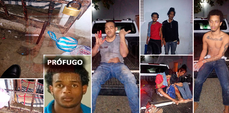 Durante la fuga Miguelito Jiménez (Chipapo) resultó herido de bala en su pierna izquierda, tras varios disparo realizado por el custodio de turno al percatarse de la fuga.