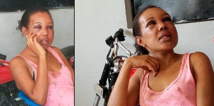 Jazmín Santos agregó que fue al Hospital la inyectaron y despacharon, cuando esta mujer debía estar interna en un centro de salud por los golpes que presenta en distintas partes del cuerpo, dice.