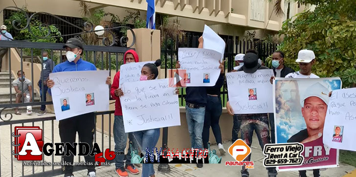 Los parientes del joven Yefry Ariel de la Cruz se concentraron en la parte frontal del Palacio de Justicia de esta localidad, y portando pancartas y vociferando consignas exigen el arresto del responsable del hecho.