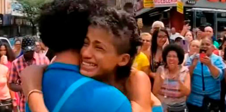 La reportera Gelena Solano, que sacó la historia, fue testigo del momento en que Susy Pérez alcanza a ver a su hijo de 19 años y corre hacia él fundiéndose en un abrazo en medio del llanto.