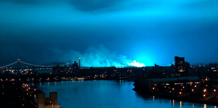 Explosión en planta eléctrica pinta de azul cielo de New York