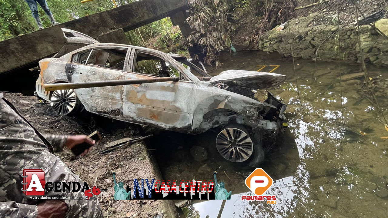 AGENDA56, DUARTE.- Un vehículo explotó la noche del lunes, luego de que el conductor perdiera el control del mismo y cayera de un puente, en la comunidad de Chiringo, en el municipio Villa Riva.