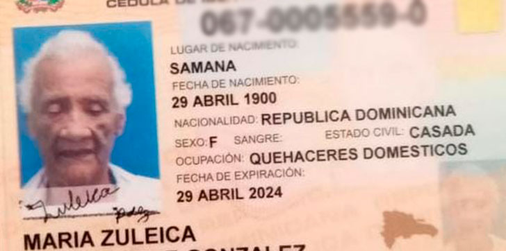 Se trata de la María Suleika Báez Kint De González, quien nació el 29 de abril del año 1900, en Sabana de la Mar, provincia Hato Mayor.