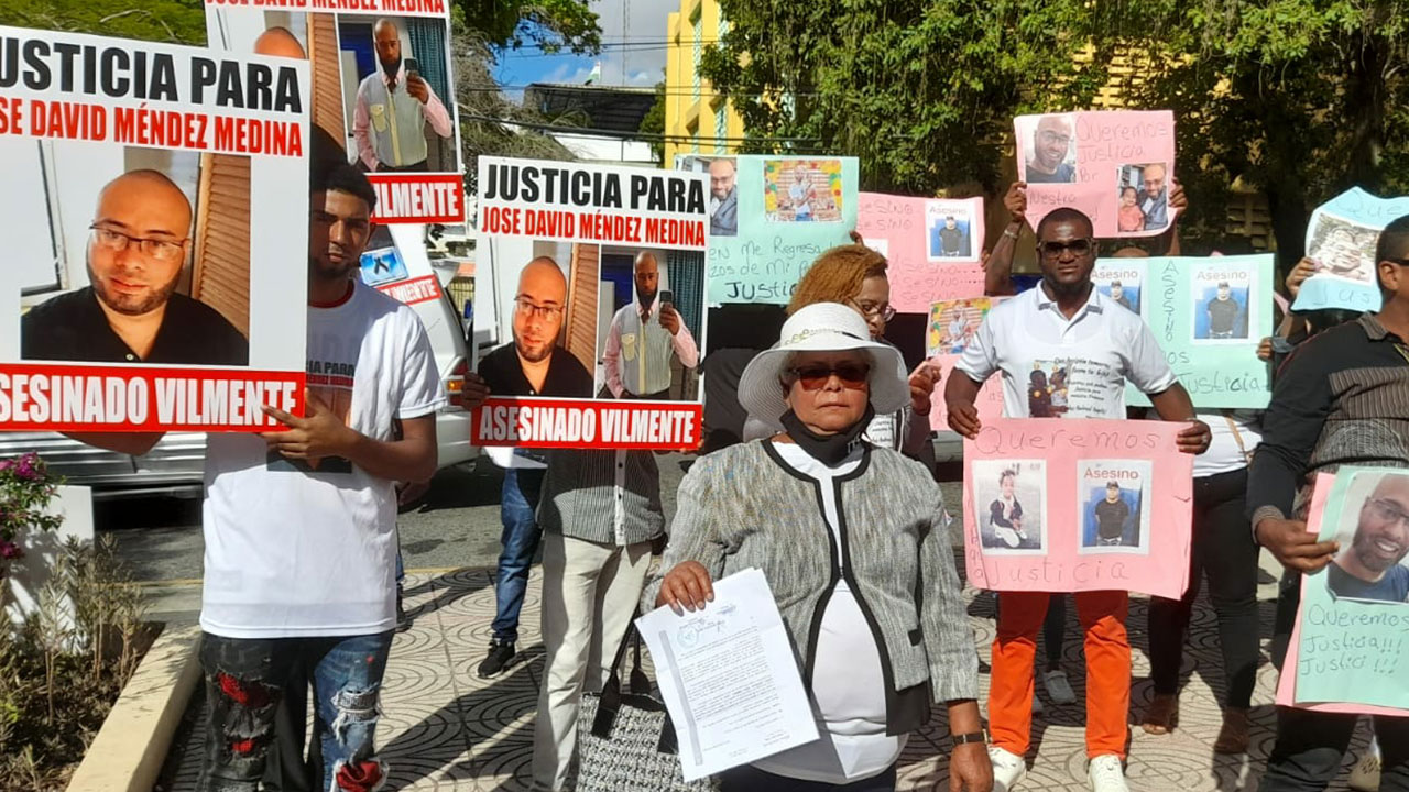 En el momento en que se conocía la audiencia, los familiares se apostaron frente al Palacio de Justicia de La Romana portando pancartas y vociferando consignas que demandaban justicia.