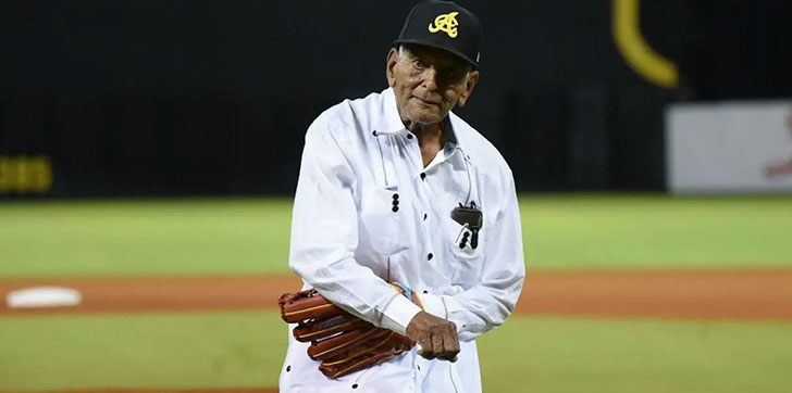 AGENDA56, SANTIAGO. – El más longevo fanático de las Águilas Cibaeñas y progenitor de peloteros, don Santiago Mejía, fue invitado a realizar el lanzamiento de la primera bola previo al partido de amarillos y Toros del Este, la noche del miércoles en el Estadio Cibao.
