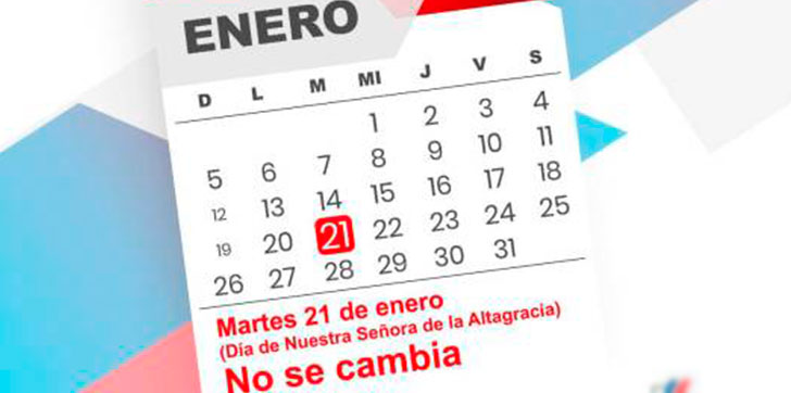 AGENDA56, SANTO DOMINGO.- El Ministerio de Trabajo reitera a toda la colectividad empresarial y trabajadora del país que el “Día de la Altagracia”, festividad religiosa que se celebra el martes 21 de enero, no se cambia.