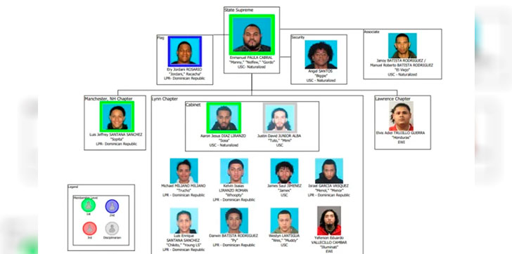 Uno de los acusados por las autoridades de Estados Unidos en Massachusetts, Enmanuel Paula-Cabral, alias “Nelfew”, alias “Gordo”, “Manny”, supuestamente se desempeña como el Supremo Estatal de los Trinitarios en ese Estado, era responsable de la totalidad de las actividades criminales de la pandilla, la coordinación con otros líderes estatales y la comunicación con el liderazgo de los Trinitarios en la República Dominicana.