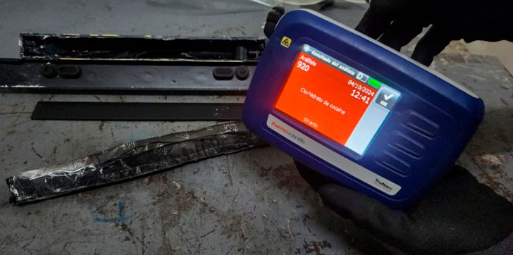 En total se confiscaron camufladas en los accesorios para vehículos, un total de 19 láminas, con un peso aproximado a un kilo y 300 gramos de cocaína.