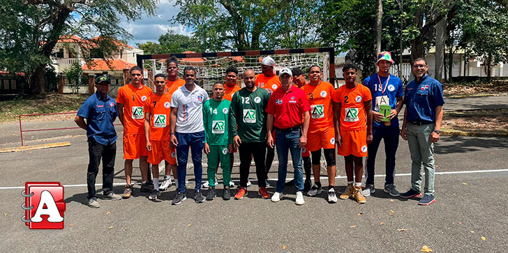 El profesor Odalis Candelier coordinador general del evento y varios representantes de la Federación Dominicana de Balonmano entregaron la copa al equipo ganador del evento.