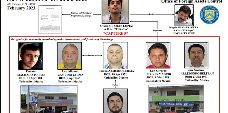 Los otros miembros sancionados del notorio cartel incluyen al hijo de Ludim Zamudio Lerma, Ludim Zamudio Ibarra, y a Luis Gerardo Flores Madrid, ambos por suministrar químicos «precursores» ilegales que se sabe que se usan en la fabricación de drogas ilícitas. También sancionaron a dos operadores de laboratorio: Ernesto Machado Torres y José Santana Arredondo Beltrán, según el Tesoro.