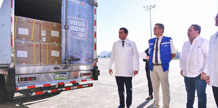 El ministro de Salud Pública y Asistencia Social (MISPAS) y presidente del Gabinete de Salud, doctor Daniel Rivera, recibió el fármaco al arribar al territorio dominicano por el Aeropuerto Internacional Las Américas, Dr. José Francisco Peña Gómez.