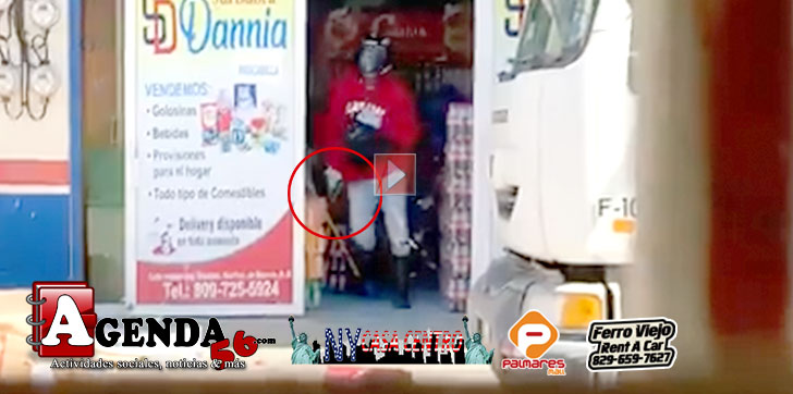 SAN FRANCISCO DE MACORÍS.– Un usuario de AGENDA56 grabó a un sujeto armado mientras salía de un establecimiento luego de perpetrar un asalto.