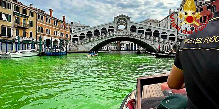 Gran Canal de Venecia se tiñe de verde y buscan a responsables