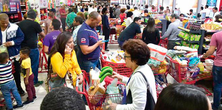A pesar de que las autoridades han insistido en que la mejor manera de evitar la propagación del Covid-19 es el aislamiento domiciliario, este sábado se observó gran cúmulo de personas en los supermercados del Distrito Nacional, el lugar con más casos confirmados del virus.