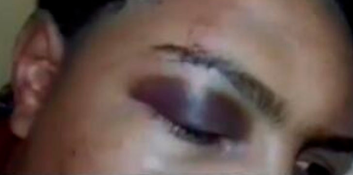 “Cuando yo fui lo encontré en estas condiciones, estaba sangrando (por una de sus cejas) le dieron punto”, explicó la madre del niño al programa diario José Gutiérrez, que se trasmite por NCDN, canal 37.