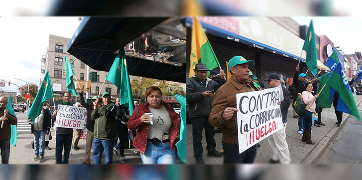 Los manifestantes, convocados por Alianza País, el Frente Amplio de Lucha Popular (FALPO), Patria para Todos, Opción Democrática, Fuerza de la Revolución y otros, se apostaron en la intersección de la avenida Saint Nicholas y calle 181 en el corazón del Alto Manhattan, lanzando consignas en apoyo al paro, contra el Gobierno, el PLD y los sobornados de ODEBRECTH.