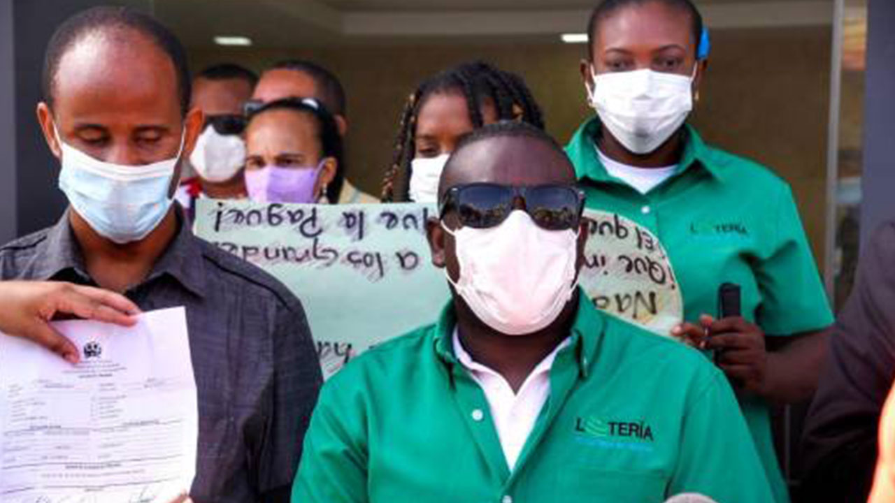 AGENDA56, SANTO DOMINGO.- Empleados con discapacidad visual de la Lotería Nacional realizaron un piquete frente al edificio que aloja las oficinas de esa institución en reclamo de su reposición.
