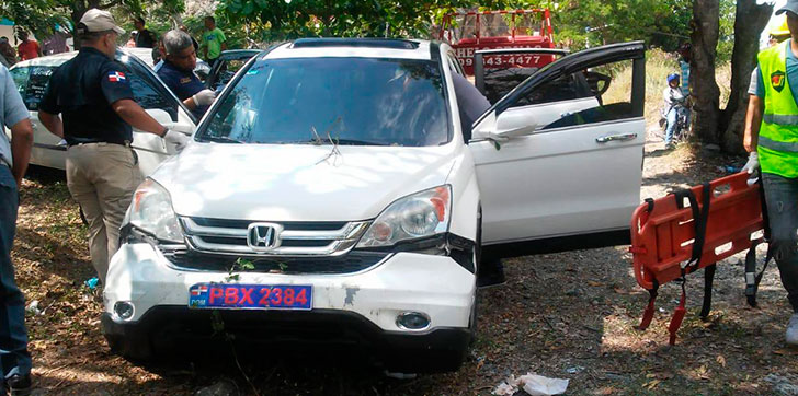 Según los investigadores, los responsables del hecho habrían intentado lanzar el vehículo por el precipicio, sin embargo no fue posible debido a que la Jeepeta marca Honda, modelo CRV, placa G332584, se atascó