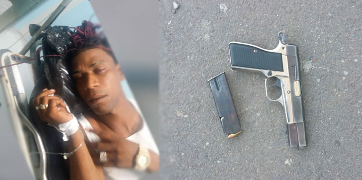 Armengo resultó con herida de arma de fuego en ambas piernas y en costado izquierdo, luego de que el individuo había enfrentando una patrulla policial con una pistola marca BROWNING Cal. 9mm., serie No. K52355, con su cargador con (07) cápsulas, que portaba de manera ilegal.