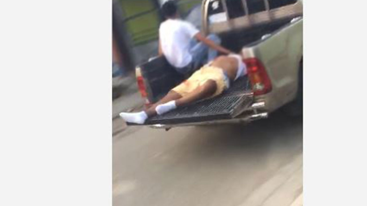 Rafael Ludovino León Olivo (el Grande) de 41 años, fue declarado muerto en el Hospital Presidente Estrella Ureña de esta ciudad. Durante el hecho que es investigado por la Policía, resultó con laceraciones en pie derecho, Anny Altagracia Toribio, quien era hijastra de, León Olivo.