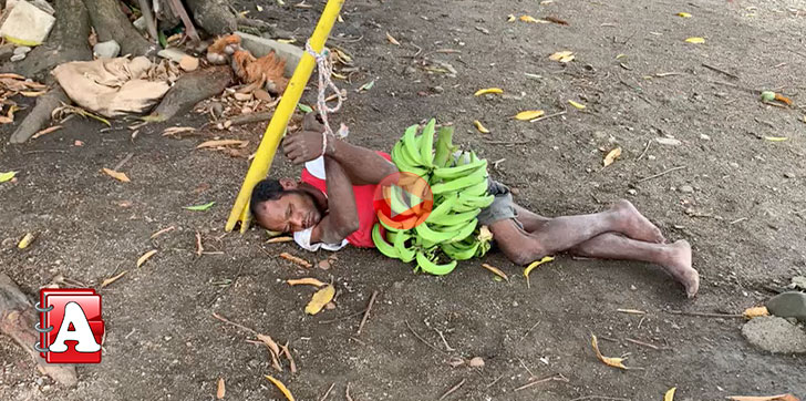El sujeto fue amarrado junto a los plátanos que pretendía robar aproximadamente a las 5 de la madrugada de este miércoles.
