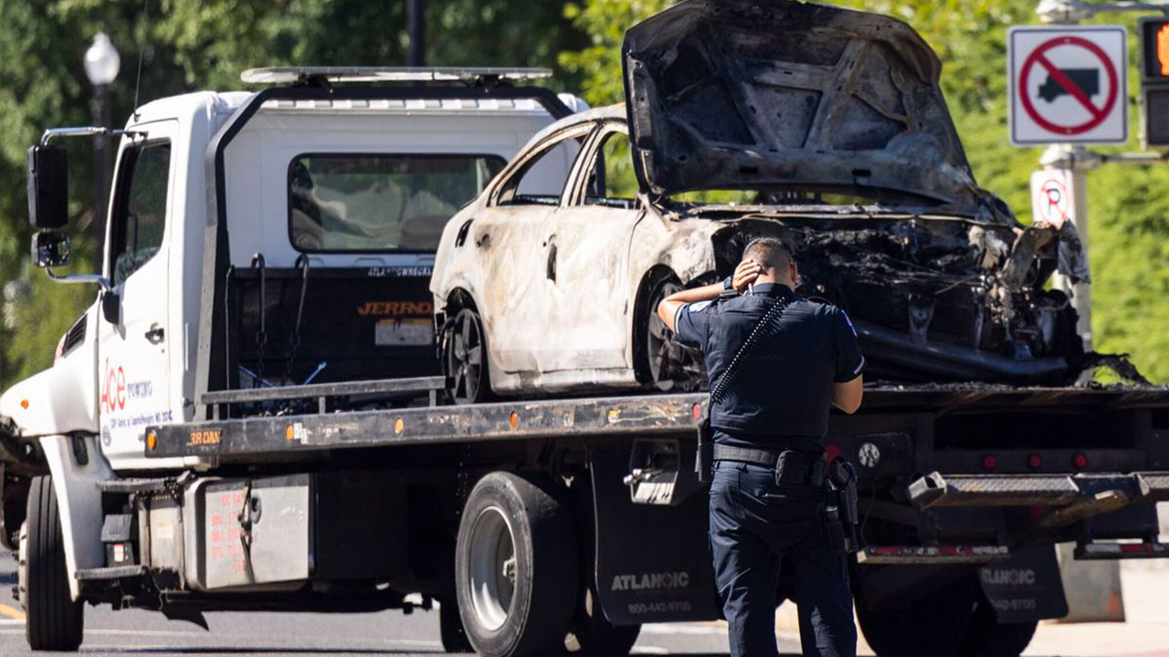 Hombre estrella un vehículo ardiendo contra una barricada del Capitolio y abre fuego antes de suicidarse