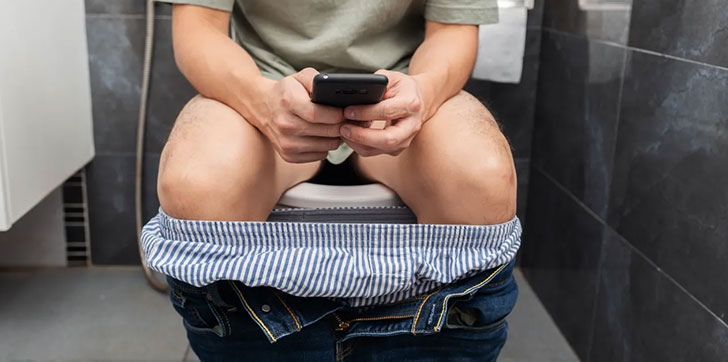 Hombre expulsa su intestino en el baño por pasar mucho rato sentado, con su teléfono celular