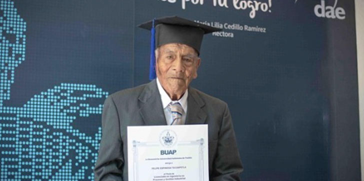 Don Felipe Espinosa Tecuapetla logró graduarse como ingeniero a sus 86 años, dando la vuelta al mundo con su historia llena de perseverancia y entereza.
