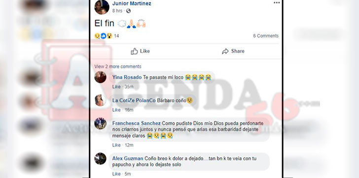 Último mensaje de Junior Martínez en la red social de Faceboook: