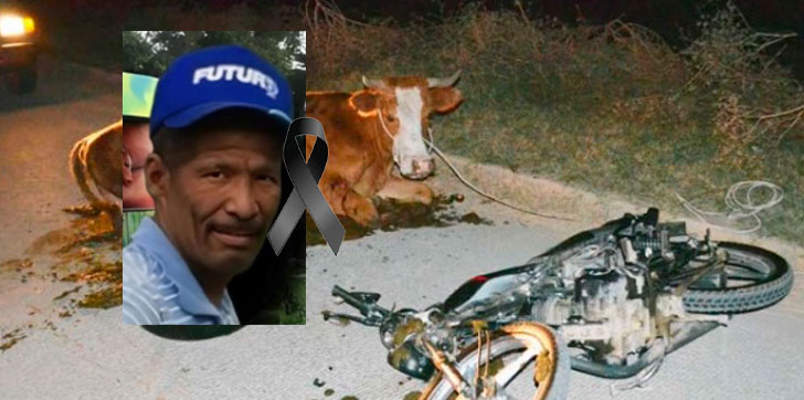La víctima fue identificada como Santo Then, conocido como El Ciego, quien se desplazaba en una motocicleta cuando impactó con una vaca que estaba en la vía.
