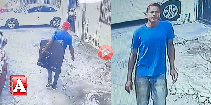 En las imágenes se puede observar al hombre al momento que entra a un edificio del referido sector, y luego saliendo mientras carga con el objeto electrónico.